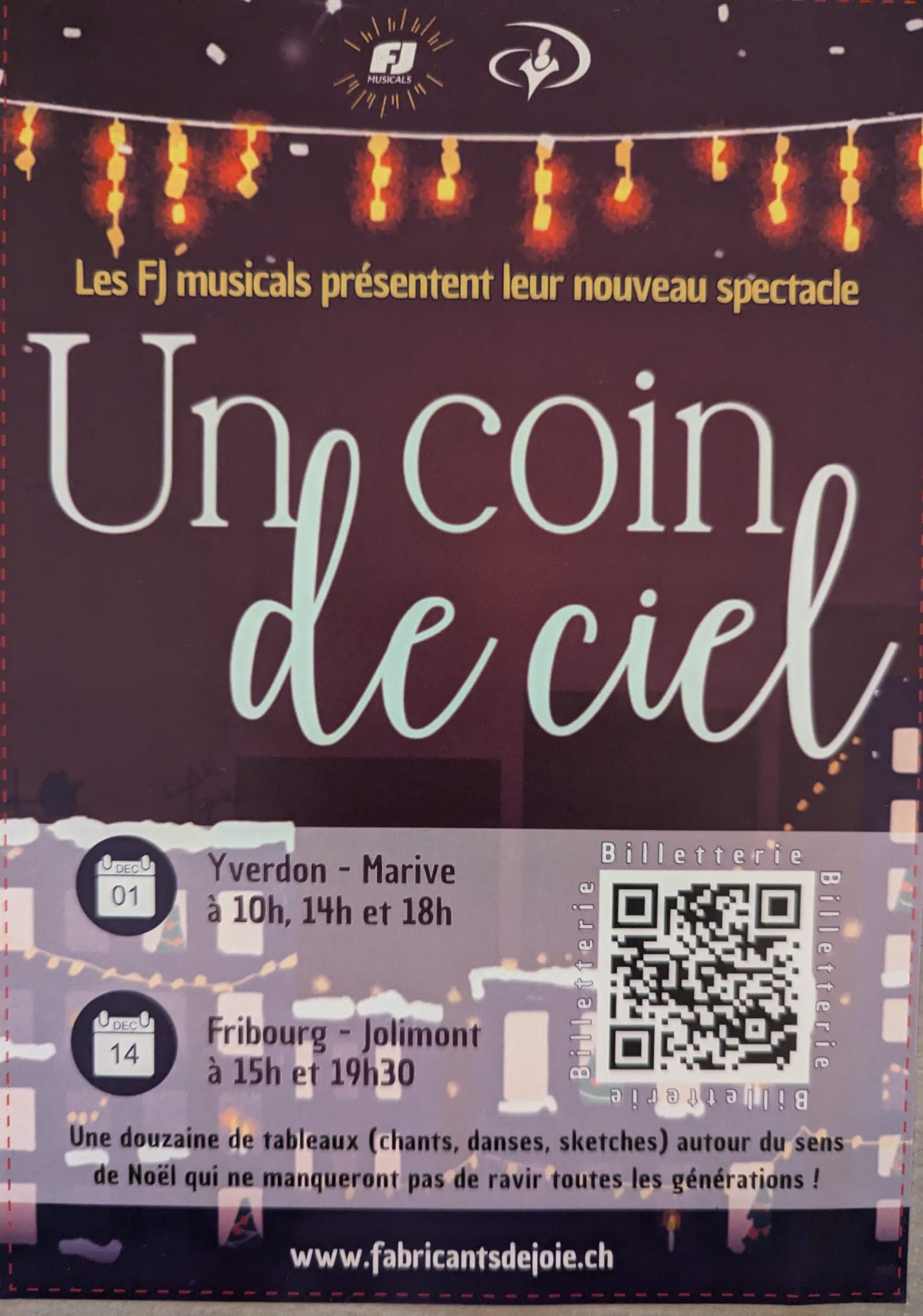 ♦ Samedi 14 Décembre à 15h00 et 19h30: Fabricant de Joie | Spectacle de Noël « Un coin de ciel »
