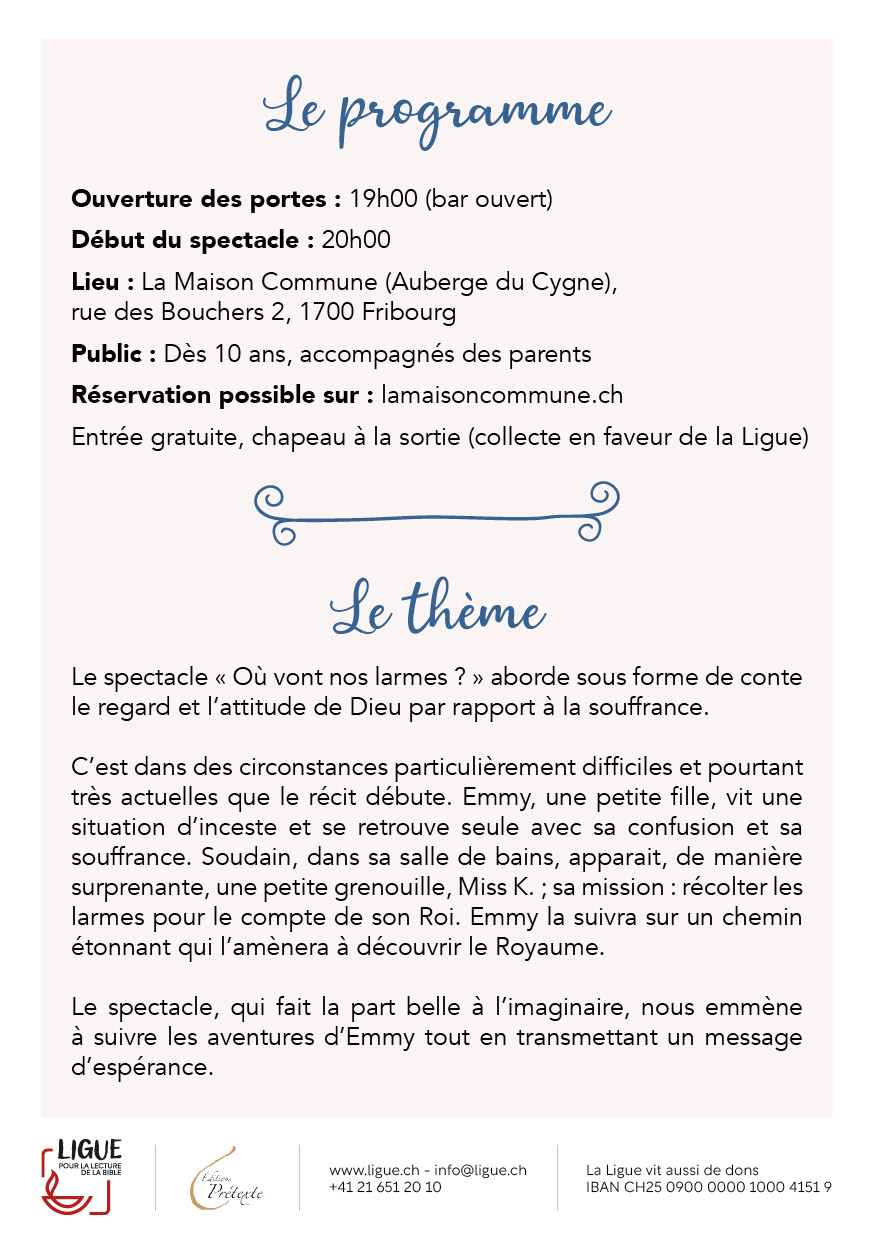 ♦︎ Mercredi 25 Mars, à 20h00: Spectacle: Où vont nos larmes » de la LLB, avec Aude Moret